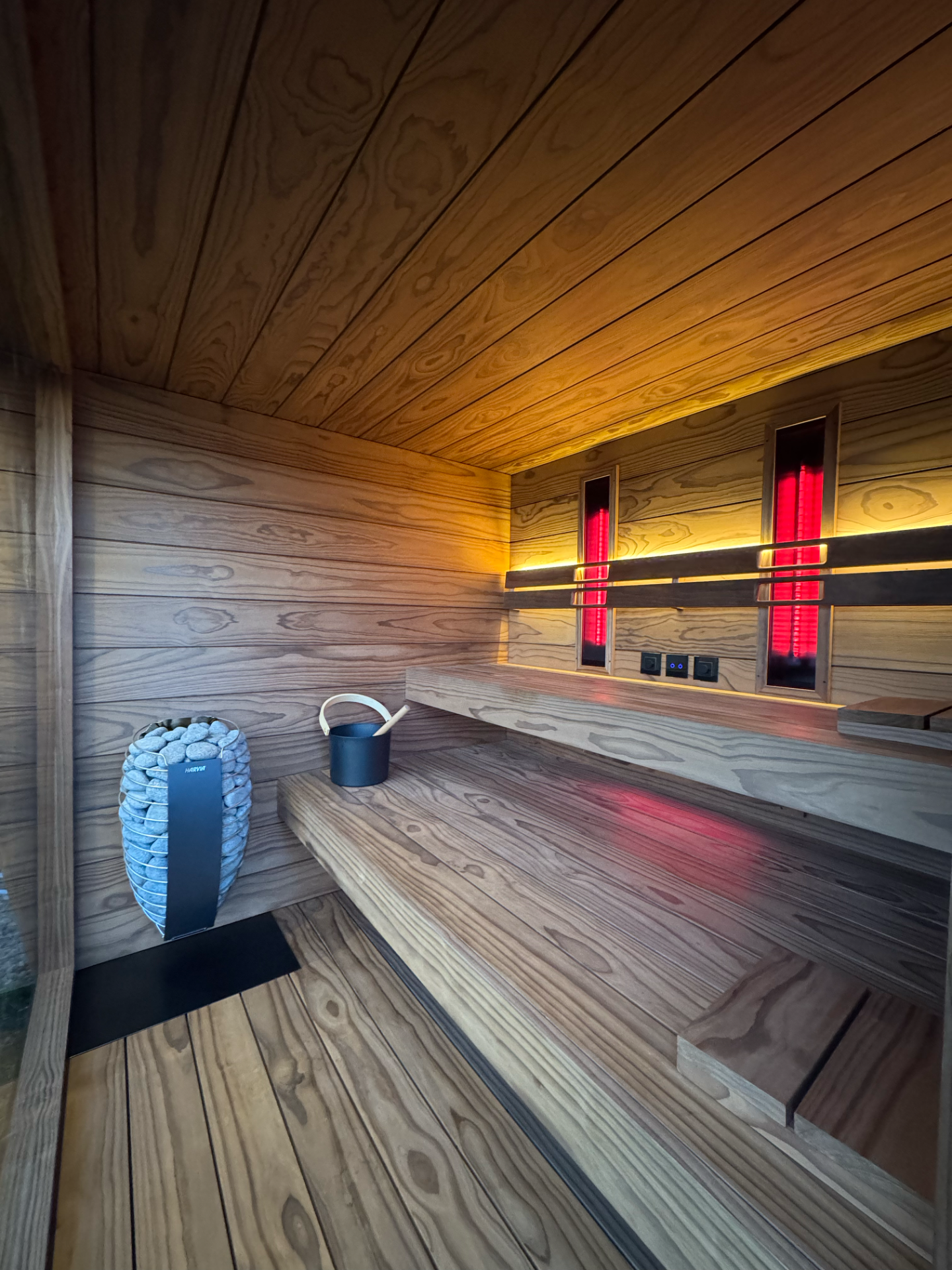 Používame iba saunové materiály, ktoré sú špeciálne navrhnuté a testované na použitie v saune, pričom každý materiál je starostlivo vybraný tak, aby poskytoval funkčnosť aj prirodzenú krásu.
